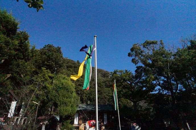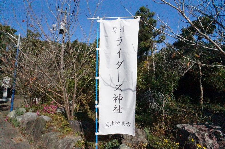 目を引くのは「房州ライダース神社」ののぼり旗。ある種のスタンプラリー戦略?
