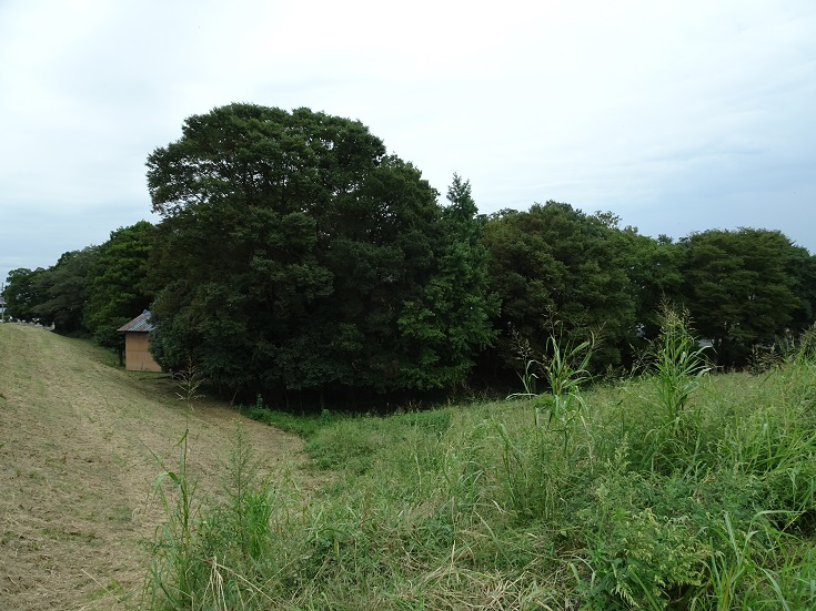 思川の堤防の下にある神社。